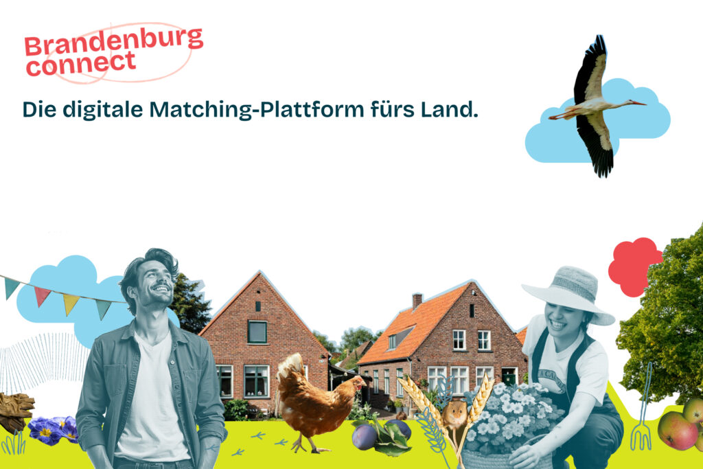 Das Modellprojekt „Brandenburg Connect“ schlägt eine Brücke zwischen Stadt und Land sowie zwischen zuzugsinteressierten Fachkräften, ländlichen Regionen und deren Akteuren. Mit seinen digitalen und analogen Maßnahmen dient es als wichtiger Wegweiser und Leitfaden für Menschen, die sich für das Leben, Arbeiten und Wohnen auf dem Land in Brandenburg interessieren. Darüber hinaus zielen diese Maßnahmen darauf ab, Zuzugsinteressierte, Kommunen und Unternehmen/Arbeitgeber besser miteinander zu verbinden und zu vernetzen sowie zum gegenseitigen Verständnis zwischen diesen Akteuren beizutragen. Das Modellprojekt setzt sich aus zwei Teilen zusammen: (1) Die digitale Matching-Plattform “Brandenburg Connect” und (2) eine analoge Veranstaltungsreihe aus unterschiedlichen Unterstützungs-, Begegnungs- und Vernetzungsformaten.